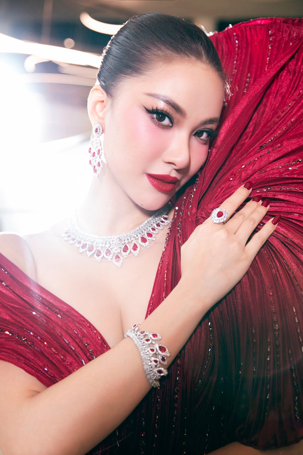 Dù đang gặp vấn đề về sức khỏe khi chân bị sưng phồng và phải dán giảm đau, H'hen Niê vẫn thể hiện sự chuyên nghiệp trong vị trí vedette. Người đẹp vẫn tự tin xuất hiện trên thảm đỏ và sàn catwalk với đôi giày cao gót.
