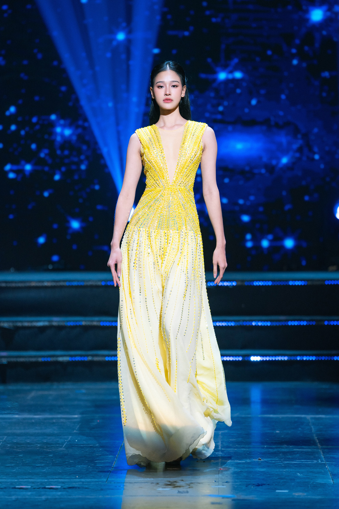 Bộ sưu tập The Poetic của NTK Hà Duy gồm 20 mẫu dạ hội dự tiệc với đa dạng các chất liệu như: voan, lụa, chiffon, tulle – những loại vải tạo hiệu ứng uyển chuyển khi di chuyển, đồng thời tôn lên sự mềm mại, thanh thoát cho phái đẹp.